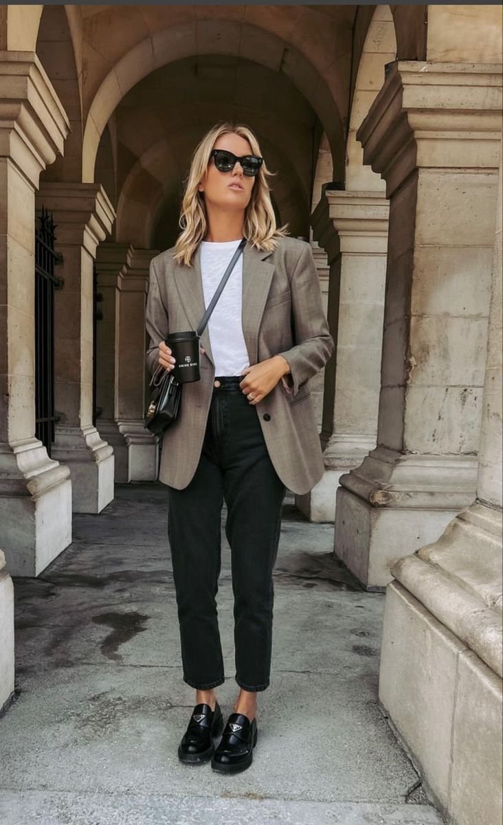 Blazer + T-shirt + Straight Jeans + Loafers